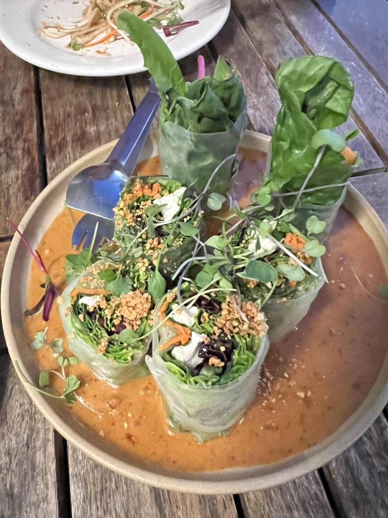 First of all, this restaurant has the best Thai spring rolls I’ve ever had. Ok ok, I know the spring rolls here may not be the most traditional, but the combination of crisp fresh veggies, tofu, and this drool-worthy peanut sauce are to die for. You HAVE to get this dish! I actually buy two whenever I go and box the second one to go, because it is THAT good.
