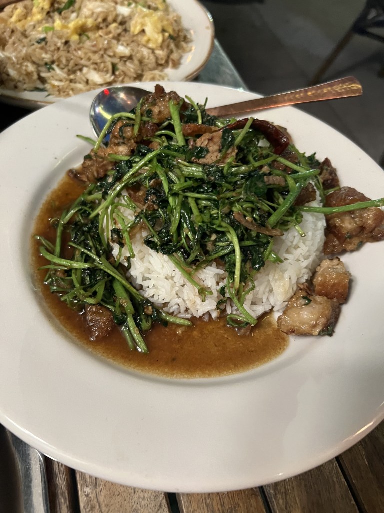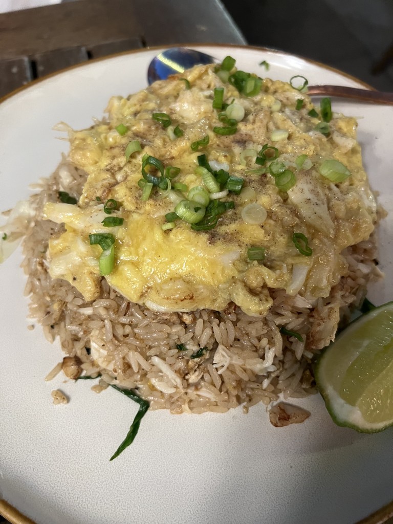 Next is my absolute FAVORITE dish here: the crab fried rice! There is SO MUCH crab and it has the perfect amount of crab and fluffy egg mixed in. Make sure to sprinkle a little bit of lime over it to give it that little bit of acidity to round it out. Such a simple dish, but so masterfully done. You can’t miss this dish!